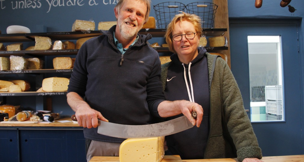"Sallandse Kruidenkaas", zeigt Marinus Post auf einen Käse im geräumigen Hofladen der Kaasboerderij Heileuver. Es ist eines der ersten Produkte, die er vor vierzig Jahren hergestellt hat. Ein echter Käseklassiker. Viele Fans fahren nach Dalmsholte, um diese besondere Kombination aus Paprika, Schnittlauch und frischem Knoblauch zu genießen. Im Hofladen finden sie auch ein umfangreiches Angebot an anderen Vechtdaler Produkten. Die Besitzer Marinus und Joke über Heileuver, Bauernkäse und das Vechtdal.